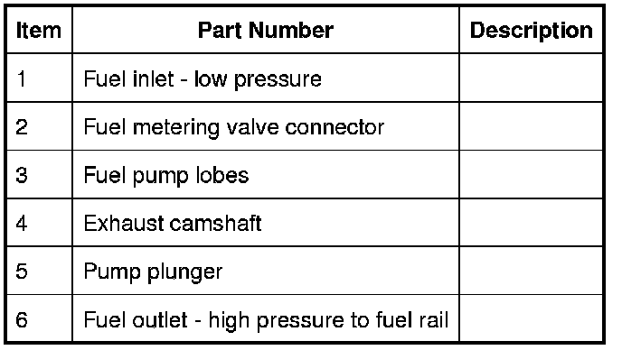 The high pressure fuel pump is a single cylinder pump which meters the fuel pressure according to demand requirements for correct fuel injection. The delivery rate of the fuel pump is adjustable by means of a fuel metering valve which is controlled by the ECM (engine control module).