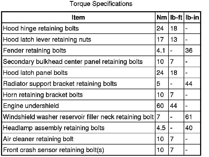 Front End Body Panels