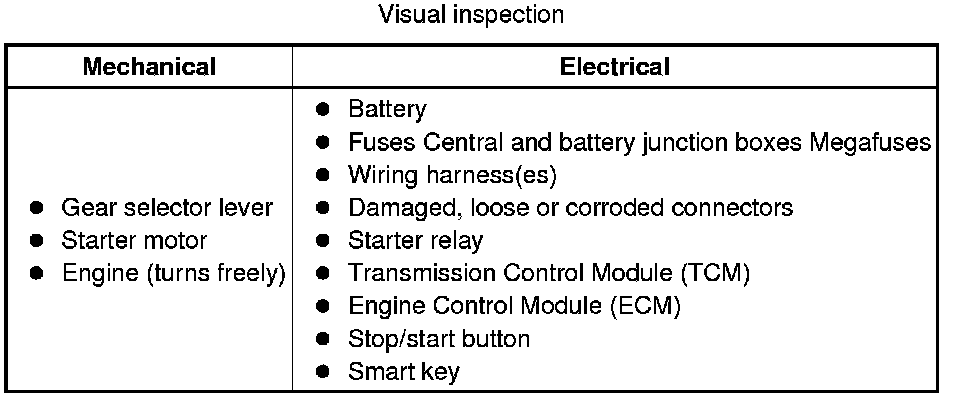 2 Visually inspect for obvious mechanical or electrical faults.