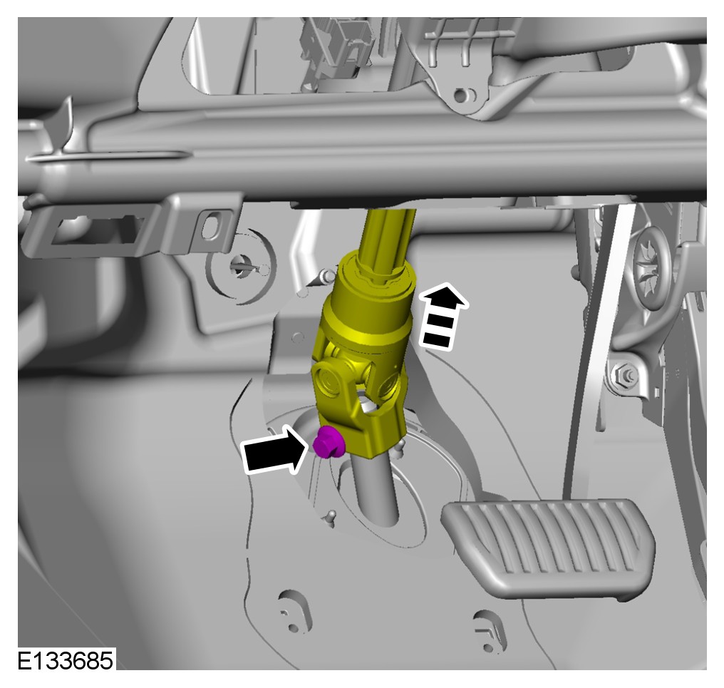 WARNING: Make sure that a new steering column flexible coupling bolt is installed.