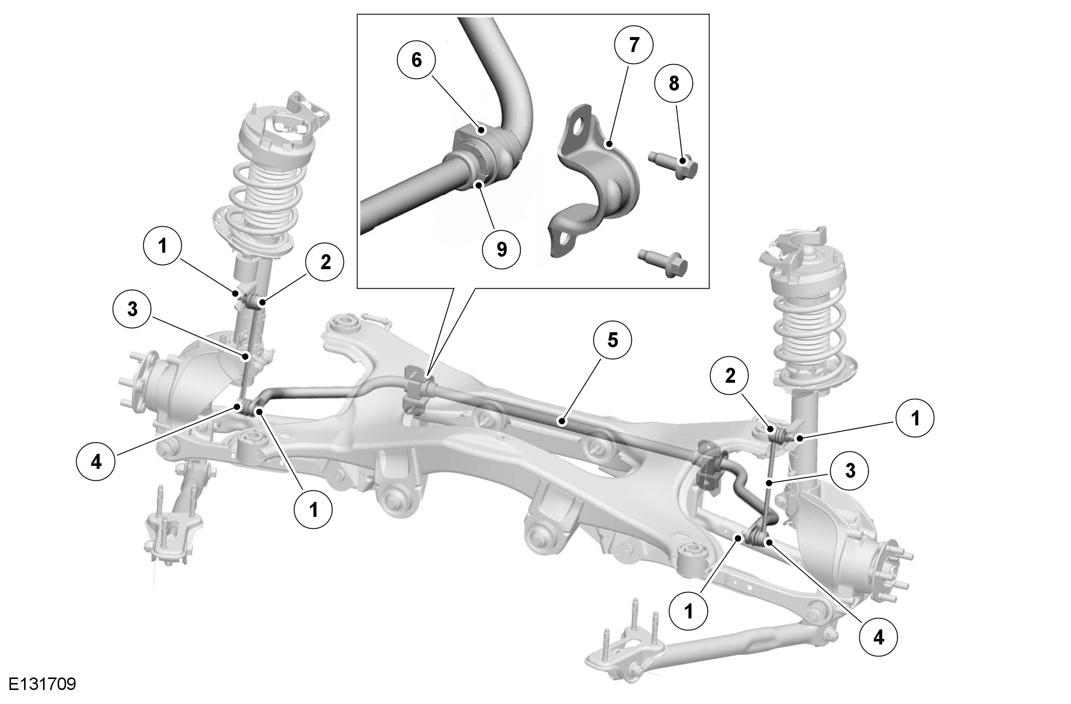 The front mounting of the link locates in a bracket which is bolted to the underside of the vehicle sill. The link is fitted with a bush which locates in the bracket and is secured with a bolt and locknut.