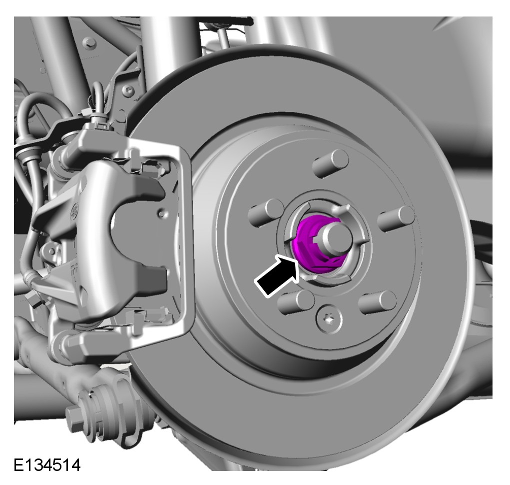 CAUTION: Do not use a hammer to detach the halfshaft from the hub assembly, failure to follow this instruction may result in damage to the halfshaft.