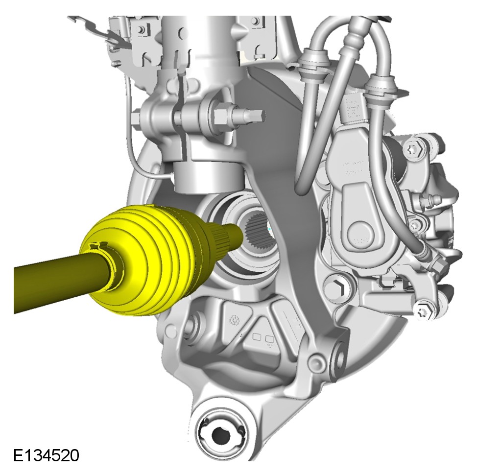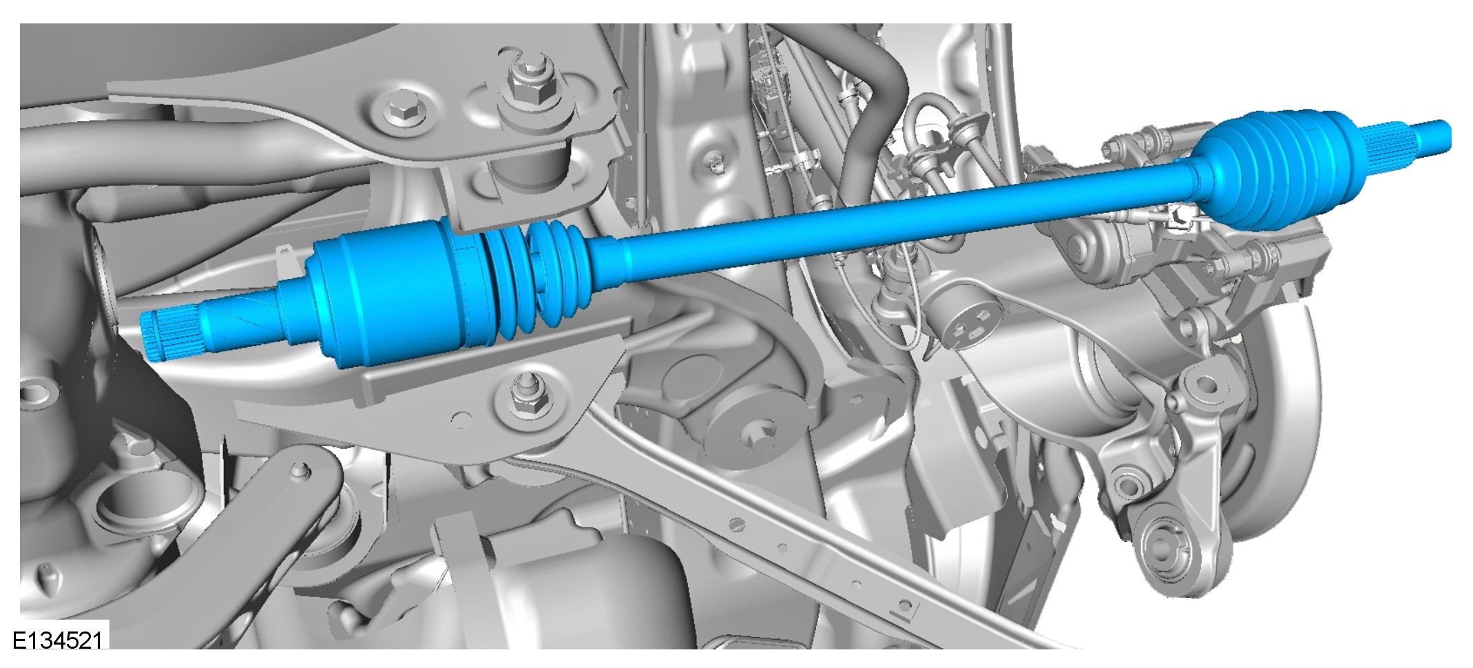 CAUTION: Make sure the halfshaft constant velocity (CV) joints do not over articulate. Failure to follow this instruction may result in damage to the CV joints.