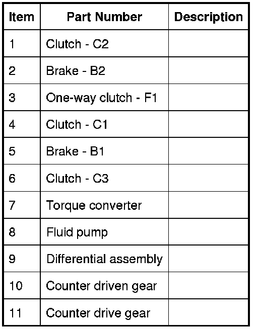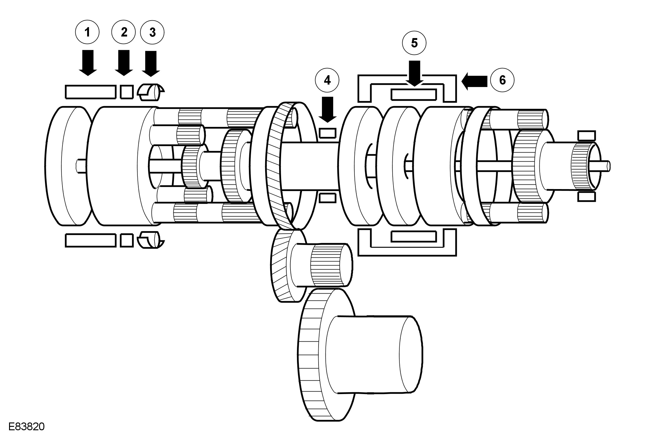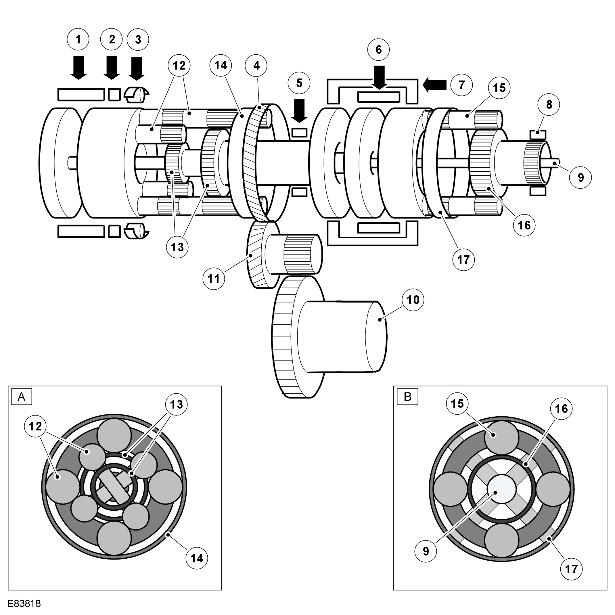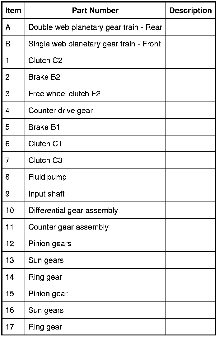 The planetary gear trains used on the AW F21 transmission comprise a single web planetary gear train and a double web planetary gear train. These gear trains are known as Ravignaux type gear trains and together produce the six forward gears and the one reverse gear.