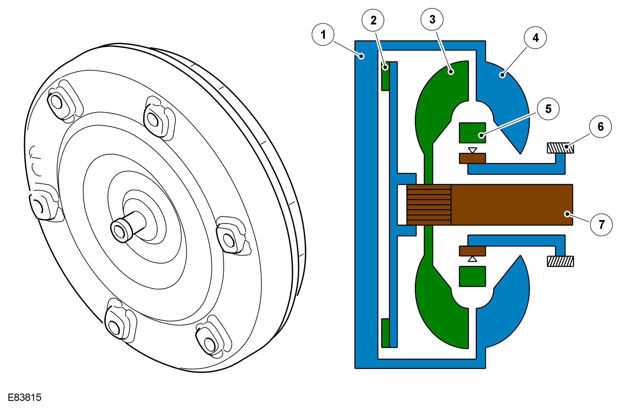 The torque converter contains a hydraulically operated lock-up clutch which is controlled by the TCM (transmission control module) via a solenoid in the valve block which actuates spool valves to control the hydraulic pressure applied to the clutch. This allows the TCM (transmission control module) to provide 3 modes of converter operation; unlocked, partially locked and fully locked.