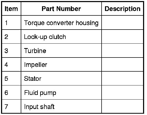 The torque converter is the coupling element between the engine and the transmission and is located in the transmission housing, on the engine side of the transmission. The driven power from the engine crankshaft is transmitted hydraulically and mechanically through the torque converter to the transmission. The torque converter is connected to the engine by a drive plate.