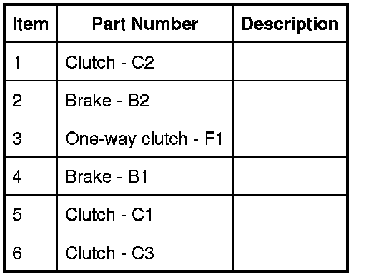 There are three drive clutches and two brake clutches (B2 is a multiplate brake clutch & B1 is a double wrap brake band) used in the AW F21 transmission. Each clutch comprises one or more friction plates dependent on the output controlled. A typical clutch consists of a number of steel outer plates and inner plates with friction material bonded to each face.
