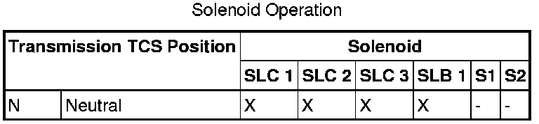 In neutral, all the solenoids, except the 3 way solenoids, are energized and the clutches and brakes are all disengaged. This allows rotation from the input shaft to rotate the front planetary gear train without transferring any drive to the differential ring gear.