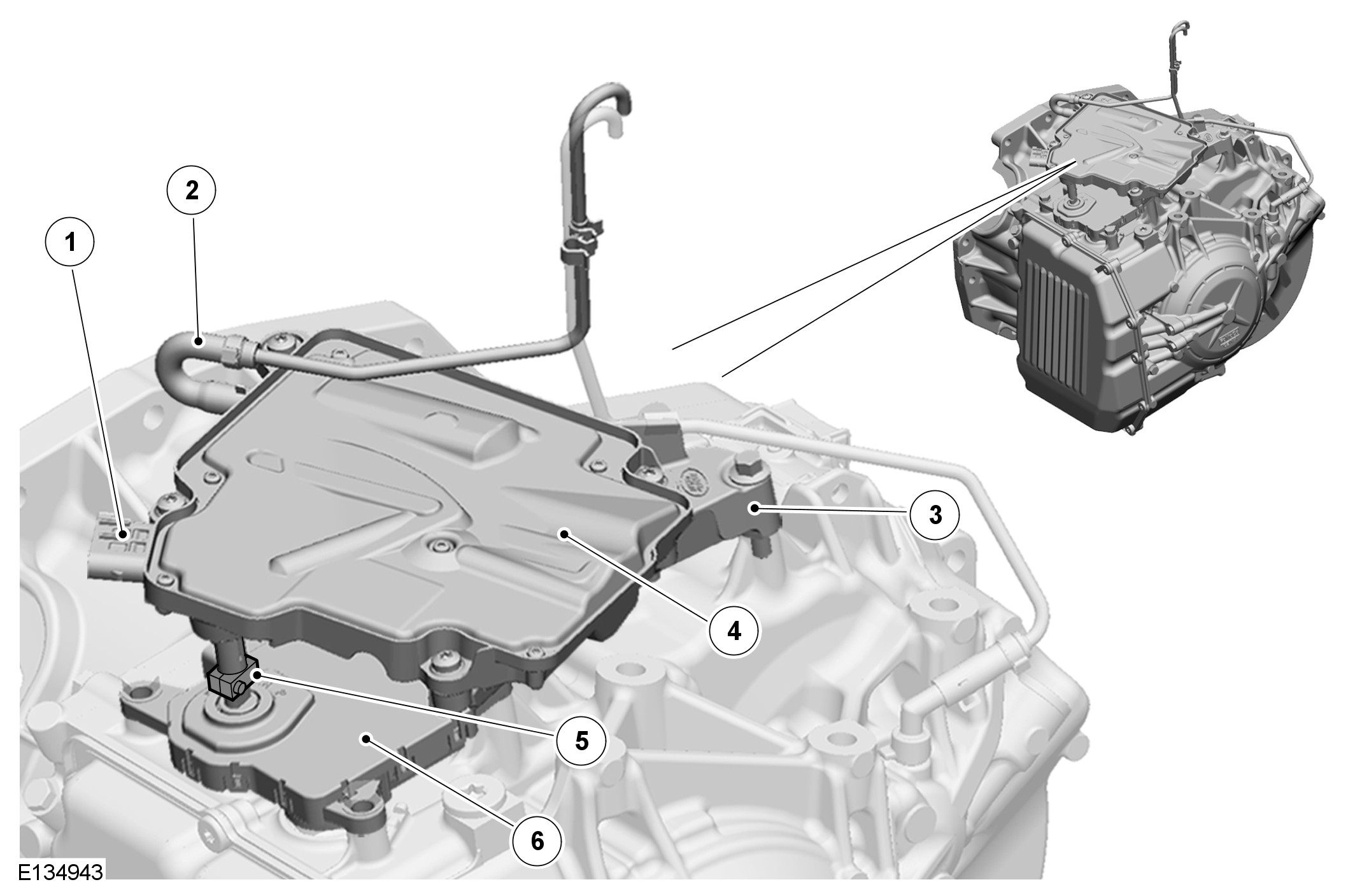 The TCM (transmission control module) is located on the top of the transmission casing and is connected on the high speed CAN (controller area network) bus to send and receive information to and from other system modules.