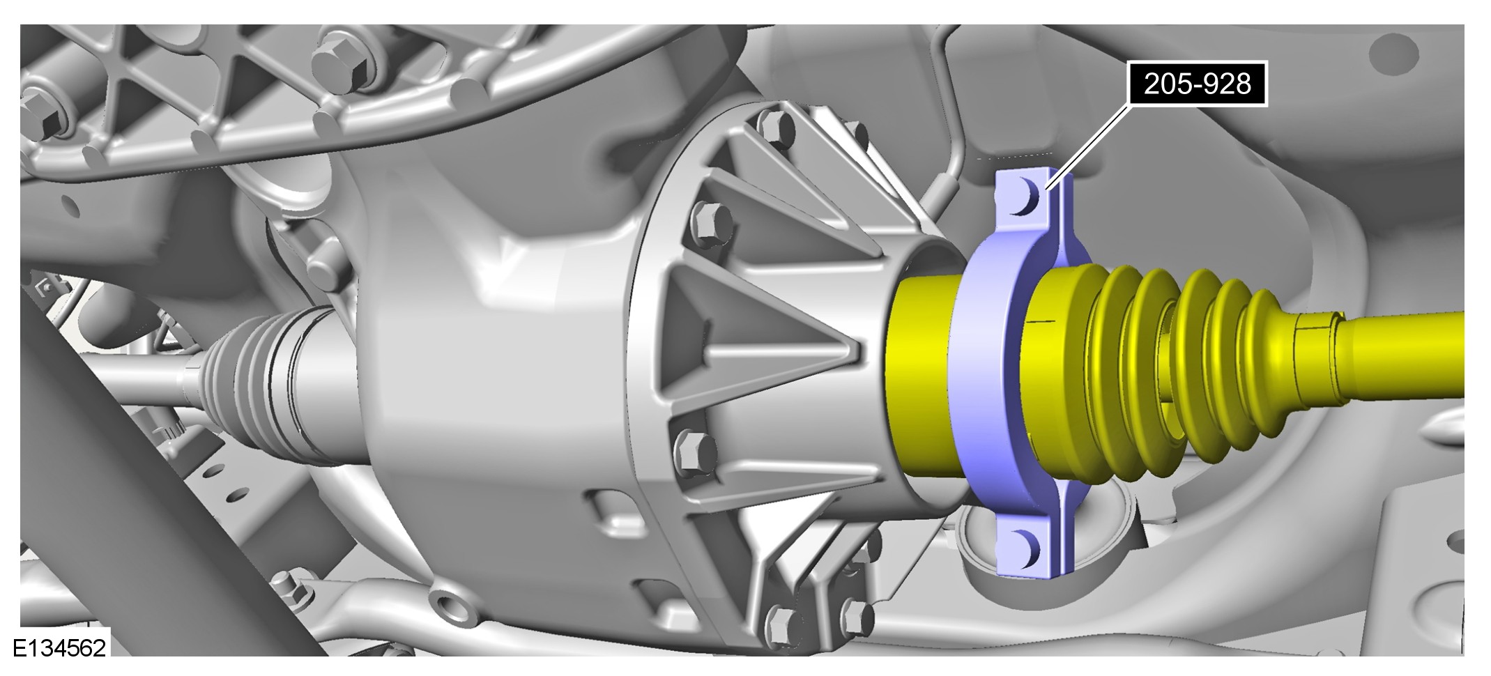 CAUTION: Make sure the halfshaft constant velocity (CV) joints do not over articulate. Failure to follow this instruction may result in damage to the CV joints.