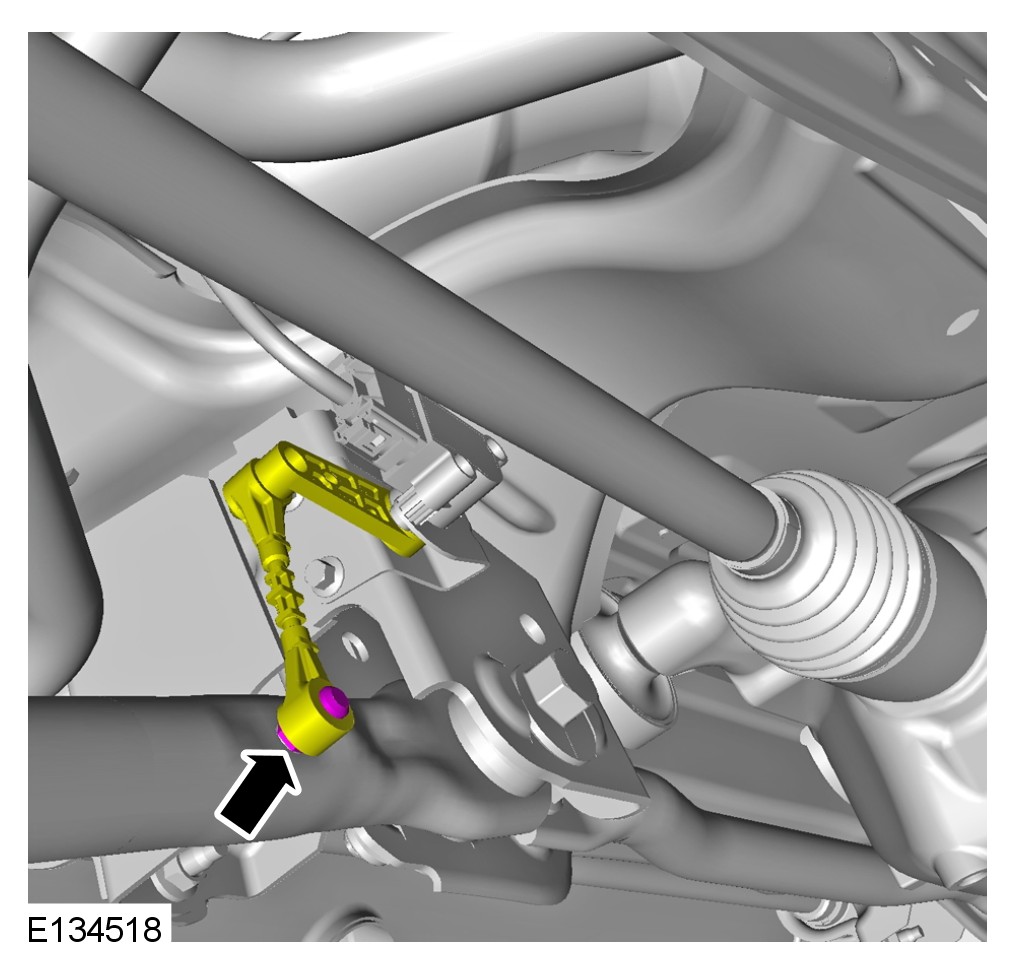 CAUTION: Tighten the nut without the weight of the vehicle on the suspension.