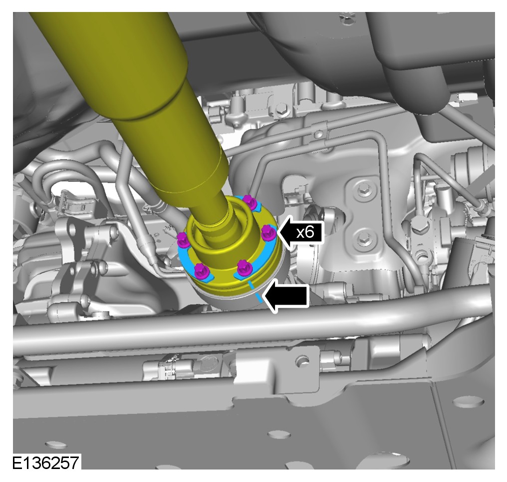 CAUTION: Mark the position of the driveshaft flange in relation to the drive pinion flange.