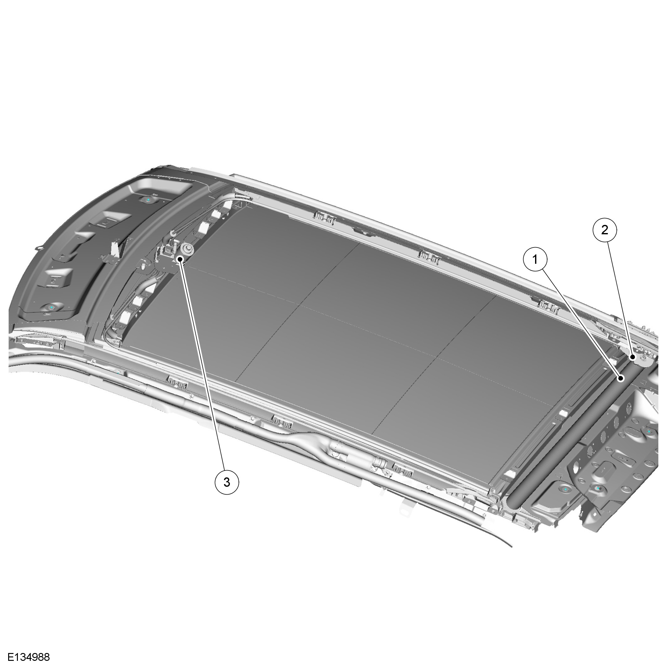 The combined control unit and motor assembly is mounted behind the headlining, to the front of the roller blind. The control unit uses inputs from the BCM and the roller blind switch to control operation of the motor.
