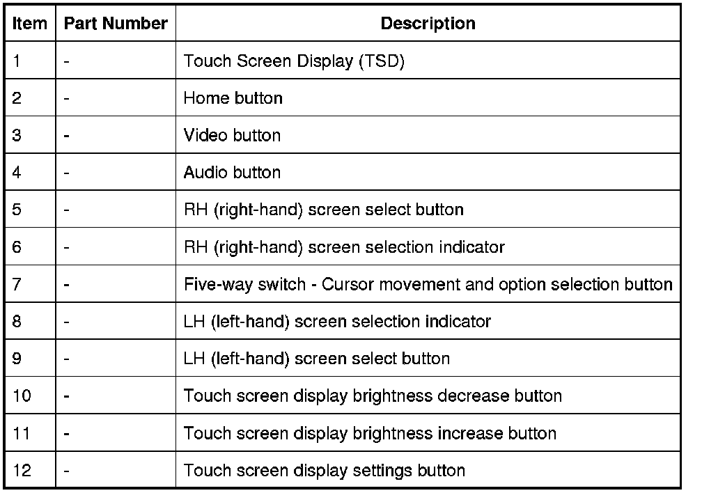 The TSD also provides driver display and control of the audio system, telephone, the rear view camera, proximity cameras, the Traffic Message Channel (TMC) and the navigation system.