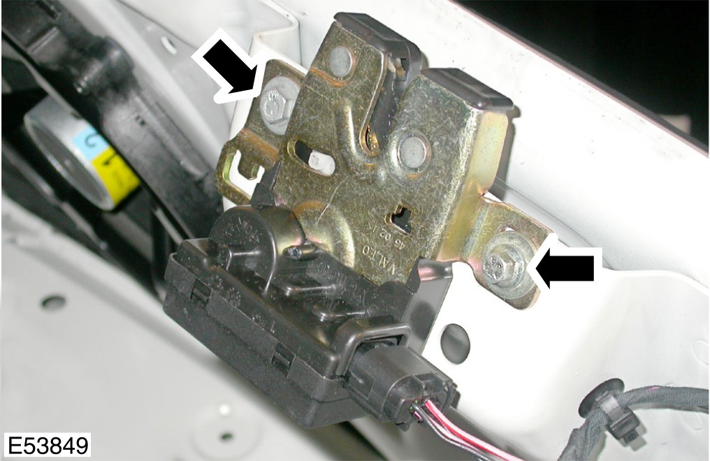 6 Open the liftgate glass and tighten the latch retaining bolts to 10 Nm (7 lb.ft).