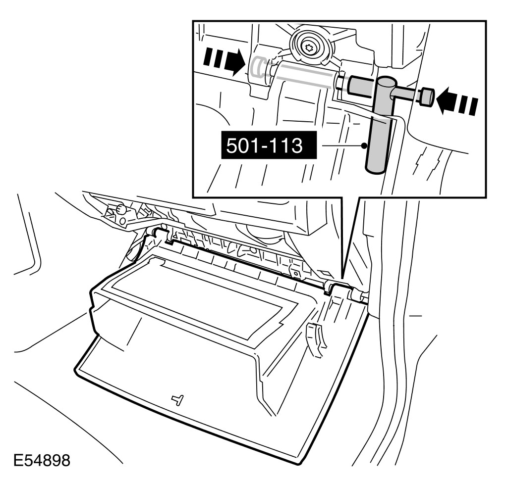 - Apply pressure to the head of the hinge pin and install the special tool. Remove the hinge pin.