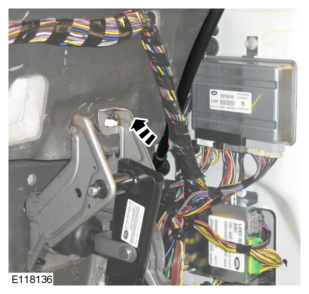 4 Using suitable tape, secure the drain hose to a suitable rod to aid removal from the A-pillar area.