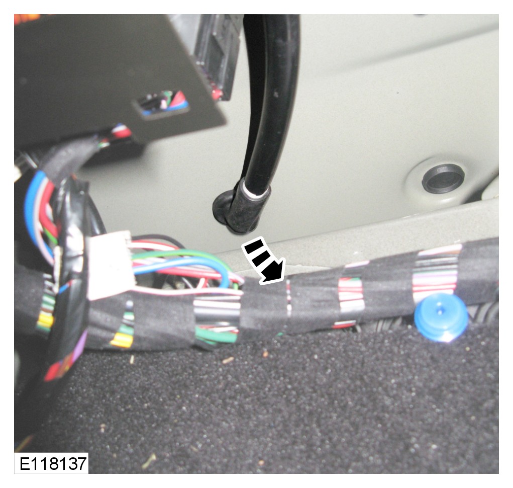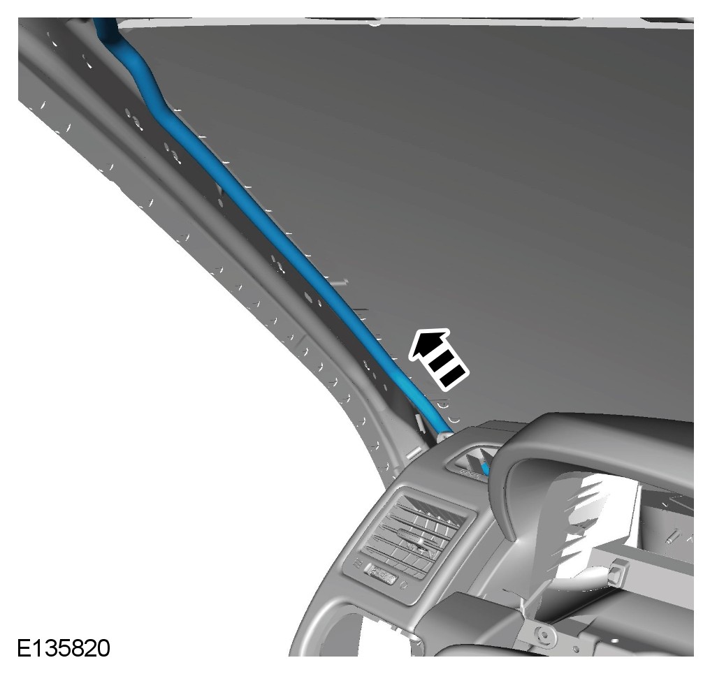 4 Using suitable tape, secure the drain hose to a suitable rod to aid removal from the A-pillar area.