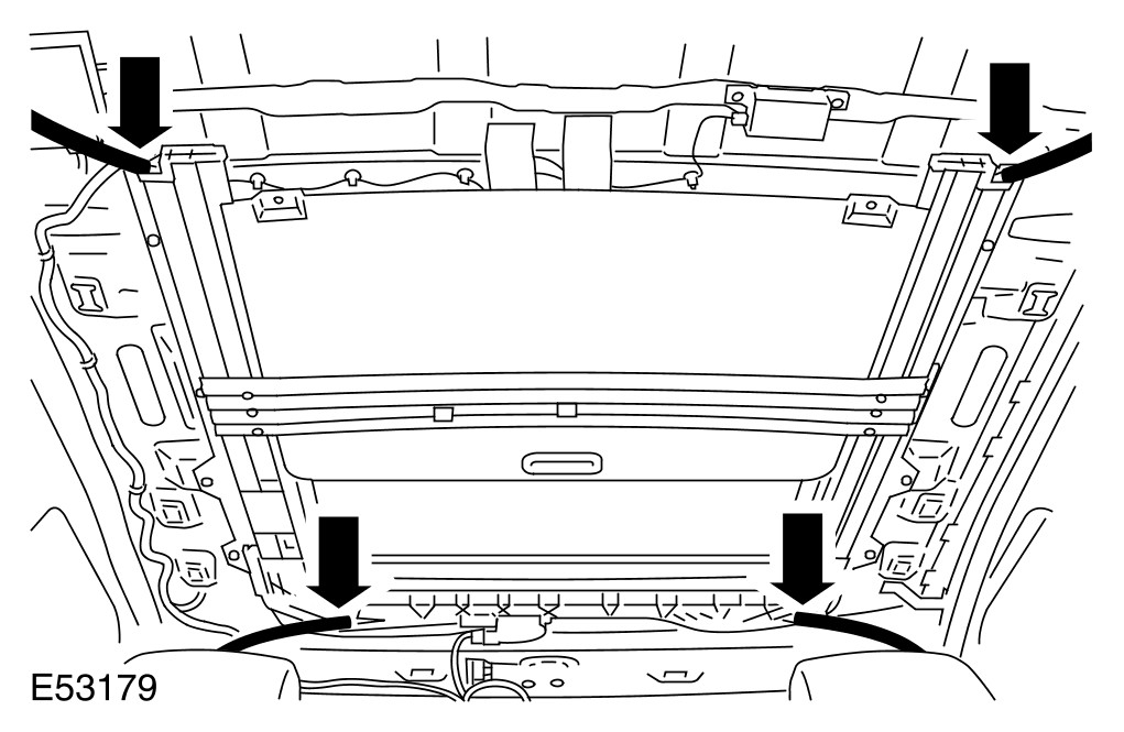 2 Remove the roof opening panel glass. For additional information, refer to Roof Opening Panel Glass Roof Opening Panel Glass