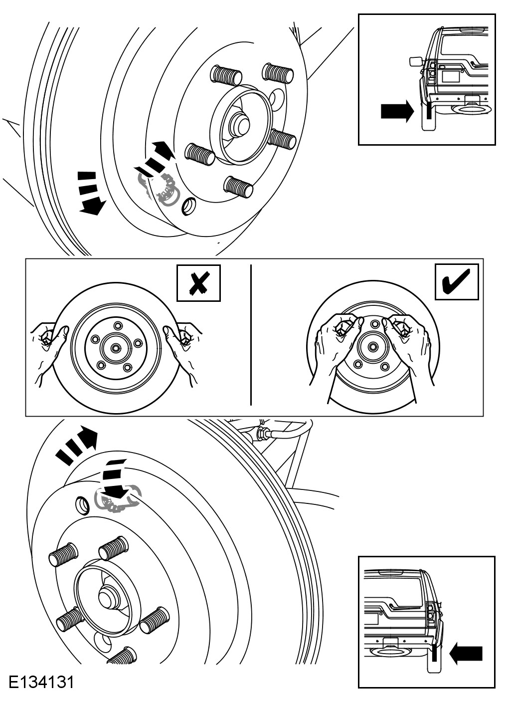 - Tap the brake disc lightly with a soft faced mallet, around the parking brake shoe location within the brake disc.