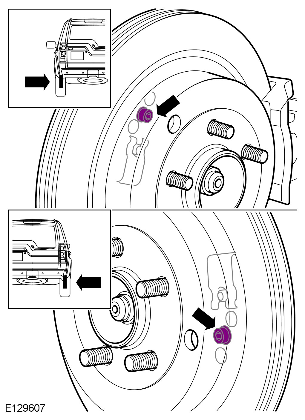 CAUTION: If the parking brake shoes or the brake discs have been removed for access to other components then DO NOT carry out this procedure.