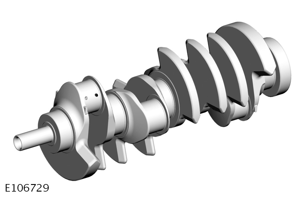At the front of the crankshaft, a tuned torsional vibration damper is incorporated into the crankshaft front pulley. At the rear of the crankshaft a pressed steel drive plate, with a steel starter ring gear, is installed to transfer drive from the engine to the transmission. The reluctor ring for the CKP (crankshaft position) sensor is integrated into the perimeter of the drive plate.