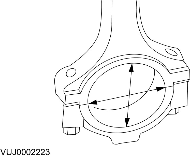 1 Measure the bearing bore in two directions. The difference is the connecting rod bore out-of-round. Verify the out-of-round is within specification.