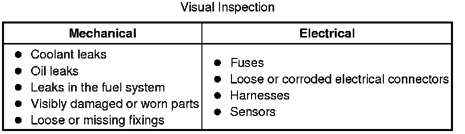 4 If the concern is not visually evident, verify the symptom and refer to the Symptom Chart, alternatively check for Diagnostic Trouble Codes (DTCs) and refer to the relevant DTC Index.