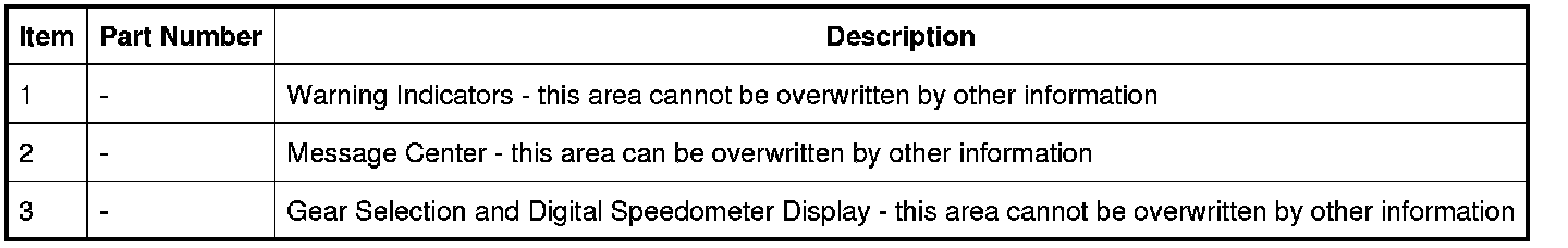 The warning indicators above the message center are functioned using Thin Film Transistor (TFT) technology. LEDs are used to illuminate the warning indicators in the speedometer and tachometer gauges and provide backlight illumination of the instrument cluster.