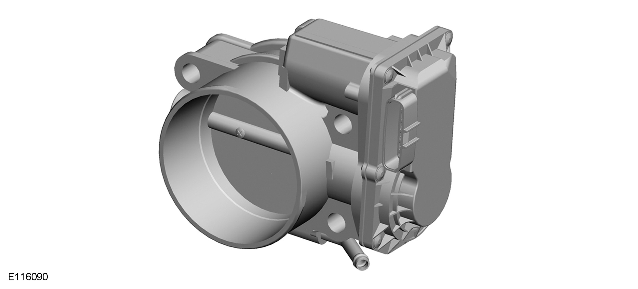 The electronic throttle is installed between the T piece duct, of the intake air distribution and filtering system, and the inlet of the SC (supercharger). For additional information, refer to Intake Air Distribution and Filtering Intake Air Distribution and Filtering