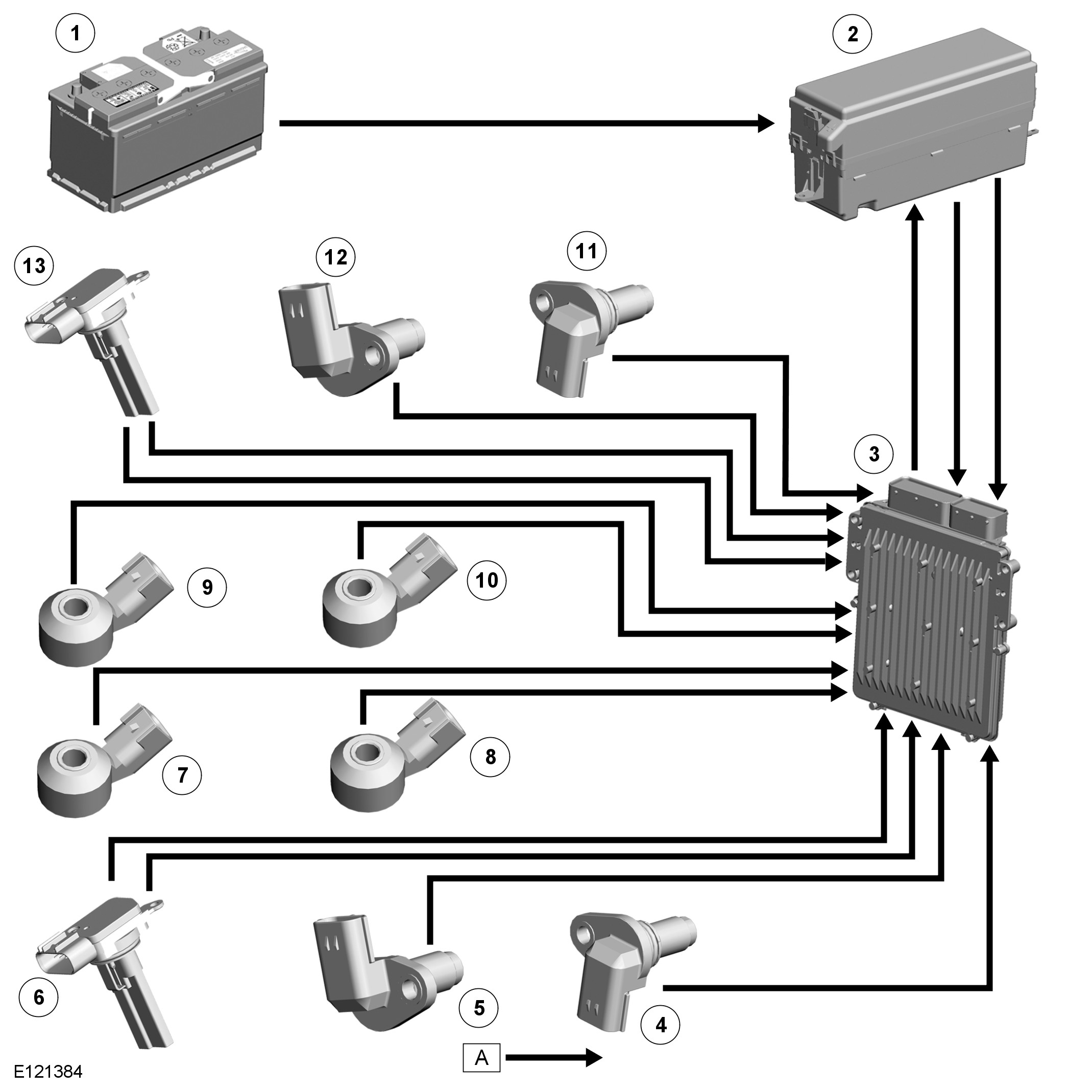 The signal from the CKP (crankshaft position) sensor indicates how fast the poles on the drive plate are passing the sensor tip. A sine wave is generated each time a pole passes the sensor tip. The ECM (engine control module) can detect variations in drive plate speed by monitoring the sine wave signal supplied by the crankshaft position sensor. By assessing this signal, the ECM (engine control module) can detect the presence of an engine misfire. The ECM (engine control module) will evaluate the signal against a number of factors and will decide whether to record the occurrence or ignore it. The ECM (engine control module) can assign a misfire judgement to an individual cylinder, which can be viewed on Land Rover approved diagnostic equipment.