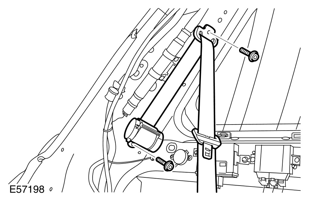 1 Remove the D-pillar upper trim panel. For additional information, refer to D-Pillar Trim Panel D-Pillar Trim Panel