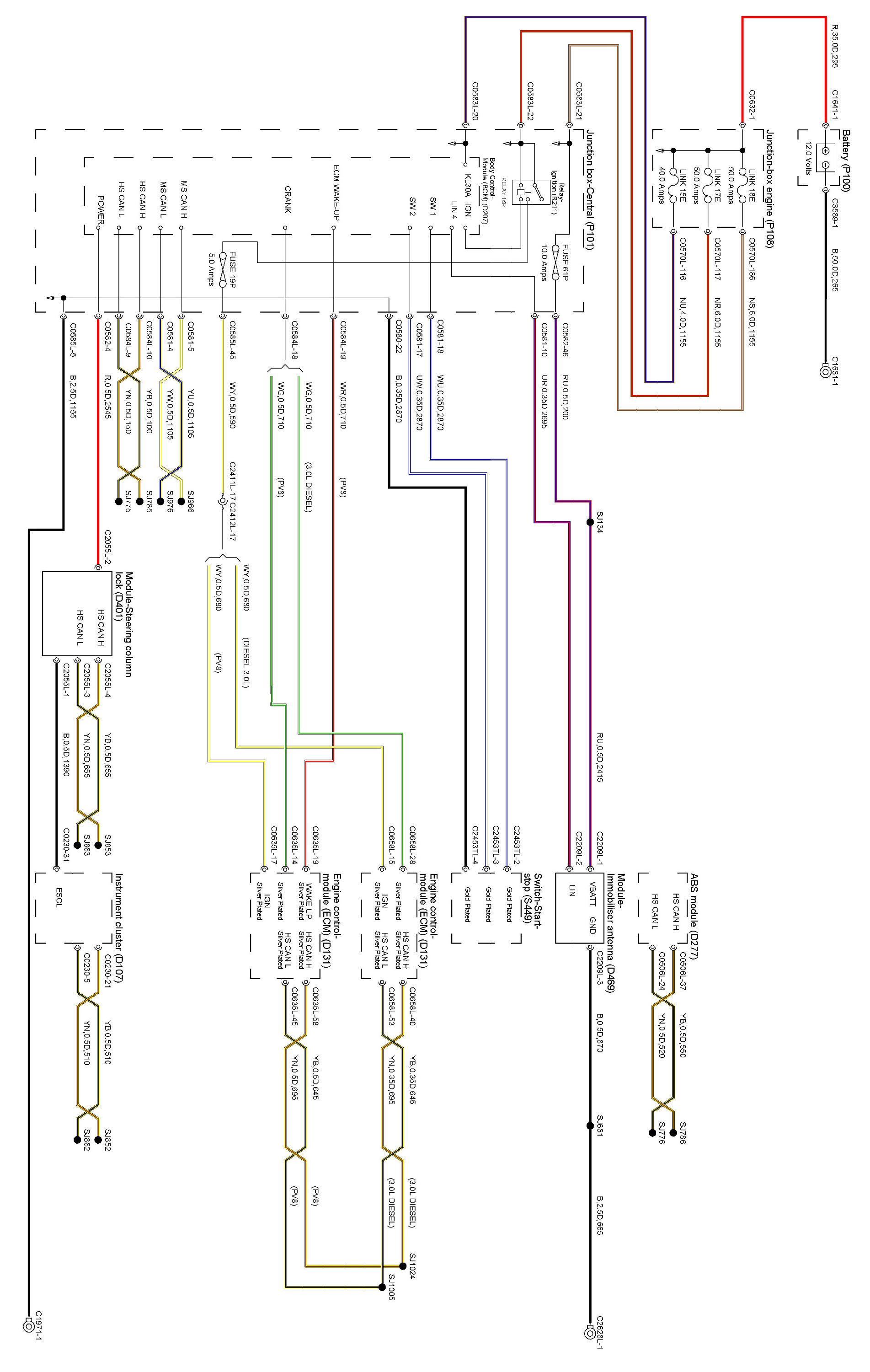 Locations: The location views for connectors and components depicted within these diagrams can be found via the connector's base number (i.e. C0570) at Vehicle/Locations/Connectors. Connector Locations