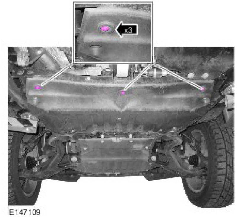 - Install the three (3) new transmission shield securing bolts.