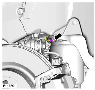 CAUTION: Brake fluid will damage paint finished surfaces. If spilled, immediately remove the fluid and clean the area with water.