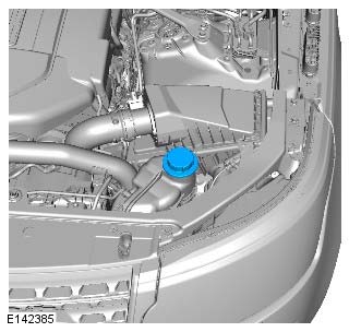 17. Continue to fill the coolant expansion tank to the rim until the coolant level stops dropping.