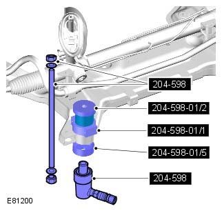 - Special tool 204-598-01/8 is used to start the bushing removal process, and must be removed after the bushing has released, as it will not pass through the sub-frame bushing aperture.