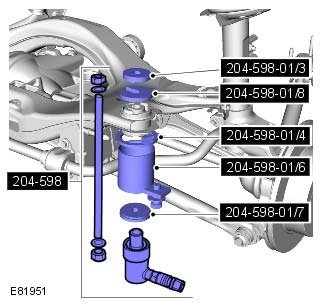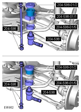 - Special tool 204-598-01/8 is used to start the bushing removal process, and must be removed after the bushing has released, as it will not pass through the sub-frame bushing aperture.