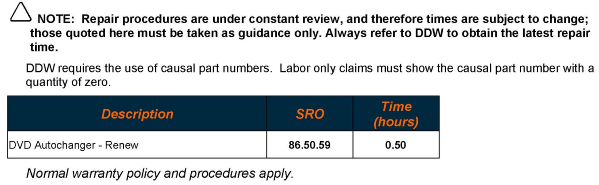 A new workshop procedure has been developed for the removal / installation of the DVD autochanger.