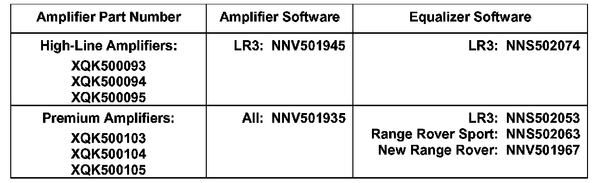 Software part numbers for applicable amplifier part numbers are as follows: