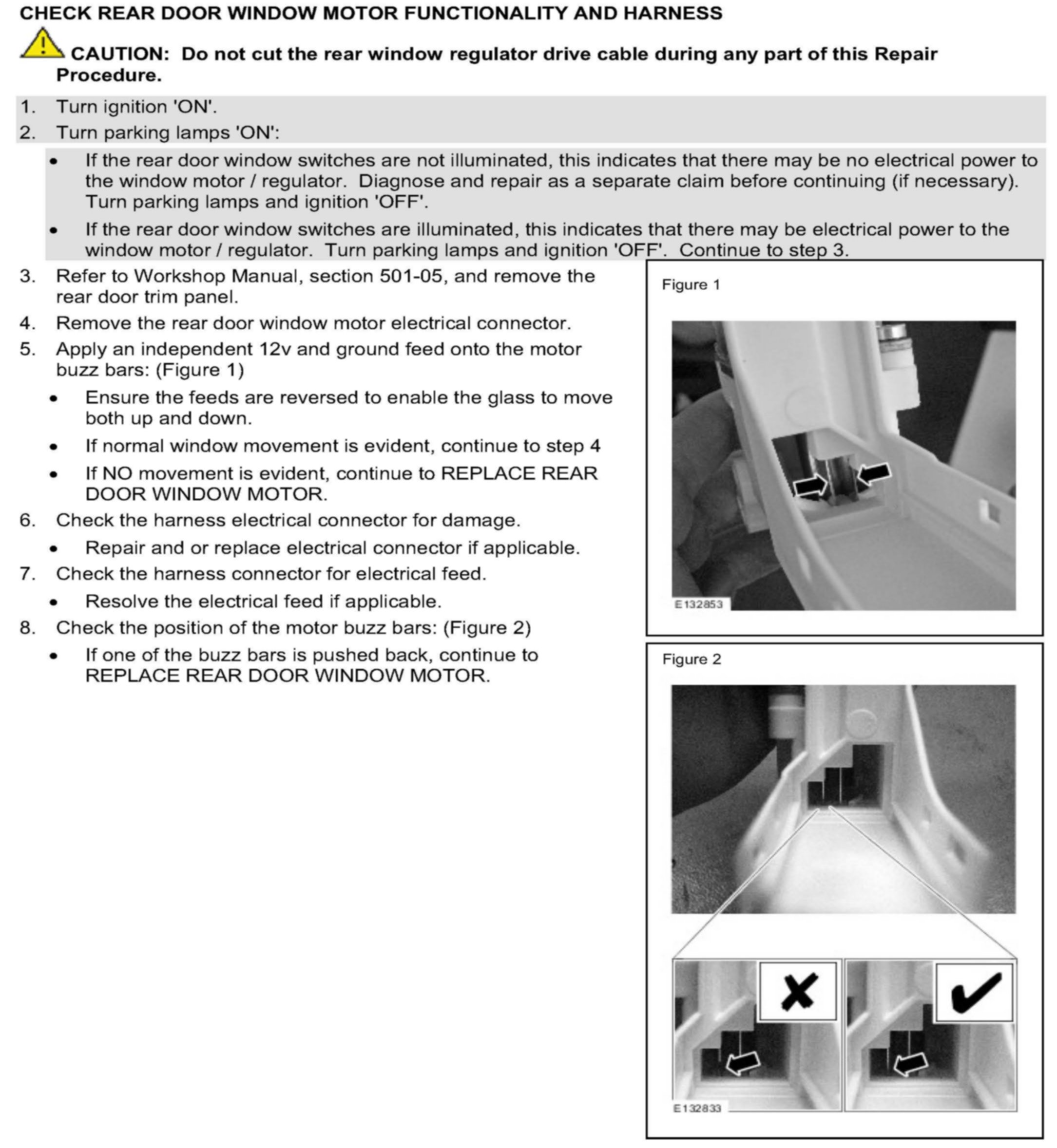 CHECK REAR DOOR WINDOW MOTOR FUNCTIONALLY AND HARNESS