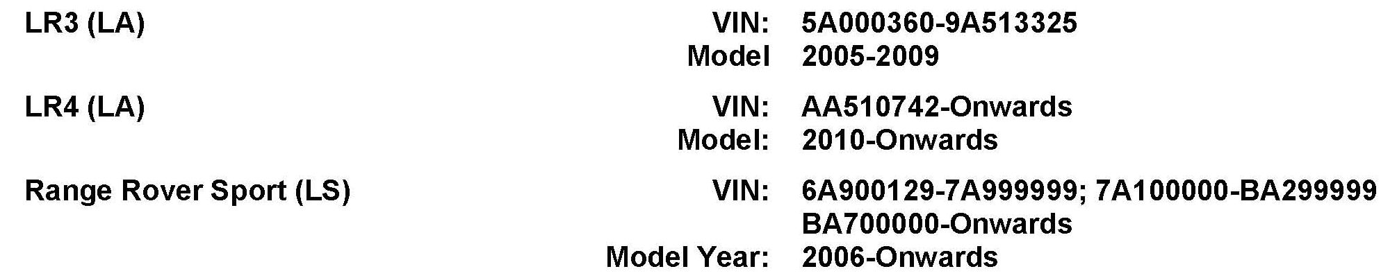 AFFECTED VEHICLE RANGE: