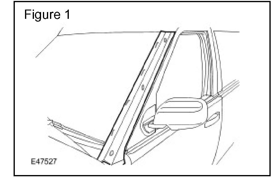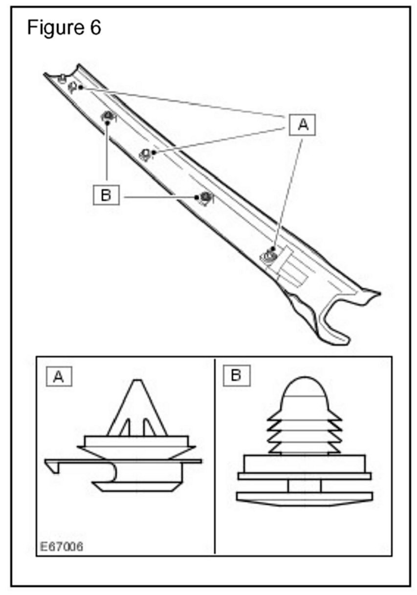 8. Attach new clips to the A-pillar exterior trim at the mounting locations shown in Figure 6.