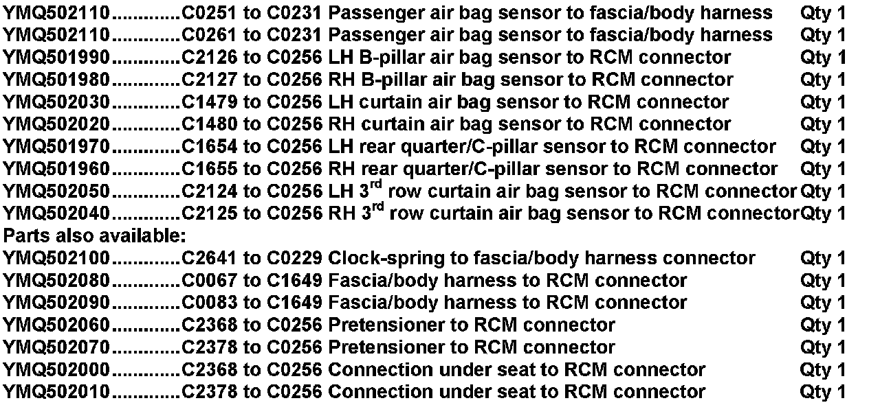 Where an air bag has deployed, the SRS overlay harness sections associated to the deployed air bag MUST be installed.