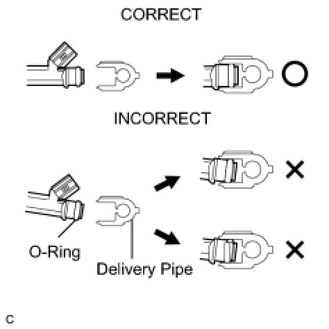 Before installing the injector, be sure to apply appropriate lubricant or gasoline where the delivery pipe or cylinder head contacts the injector O-rings.
