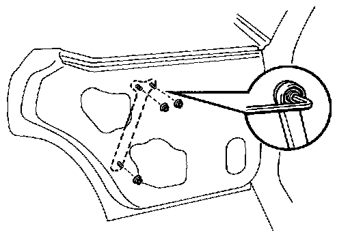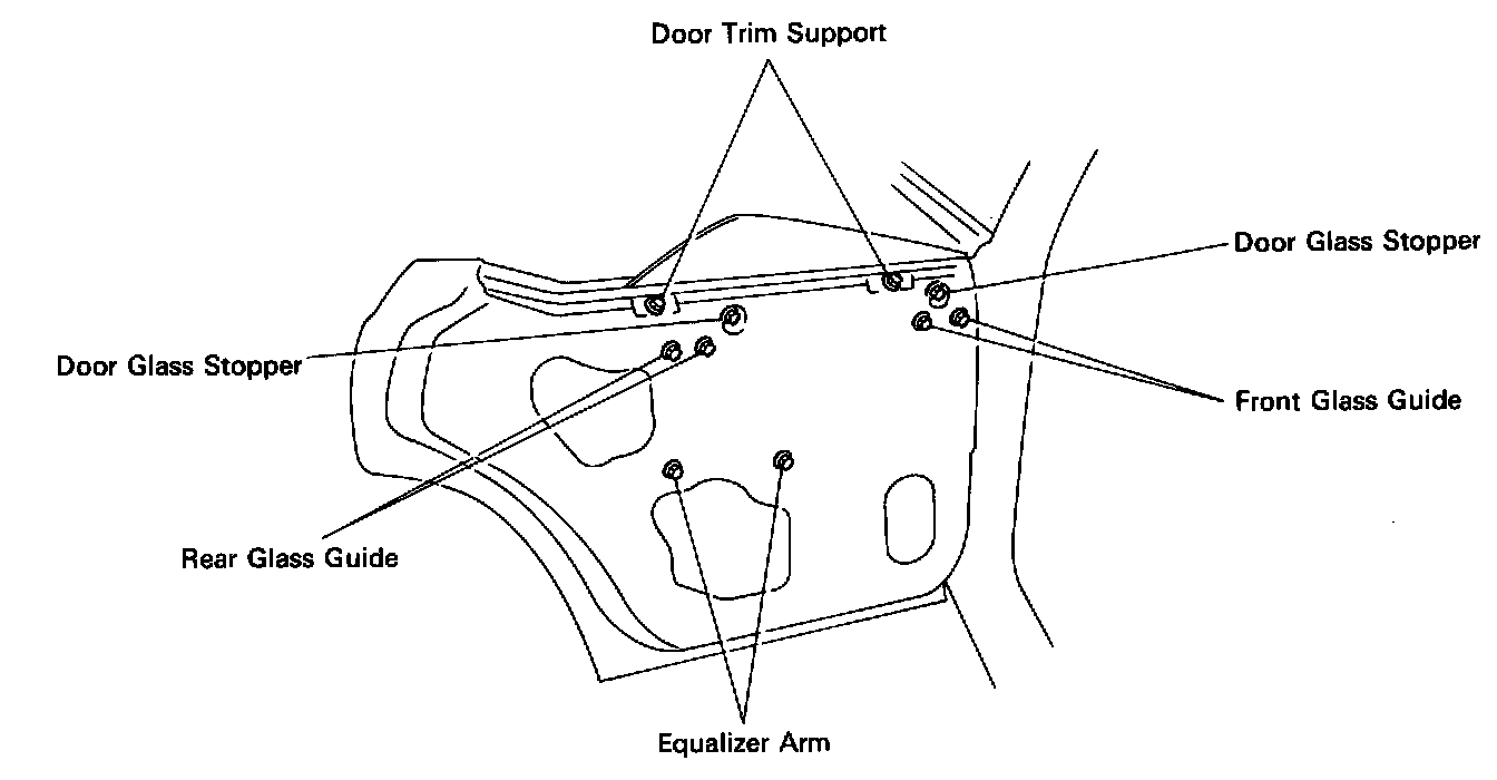 (b) Install the door glass to the regulator with two glass mounting nuts.