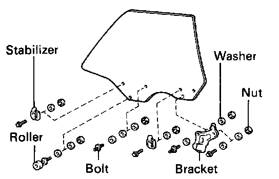 Install the rear glass guide with the lower nut (b) and temporarily tighten two upper nuts (a).