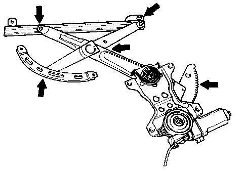 NOTICE: Do not apply MP grease to the spring of the window regulator.