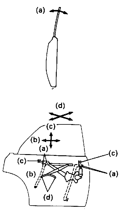 (c) (In vertical direction) Adjust the door glass stopper (c).