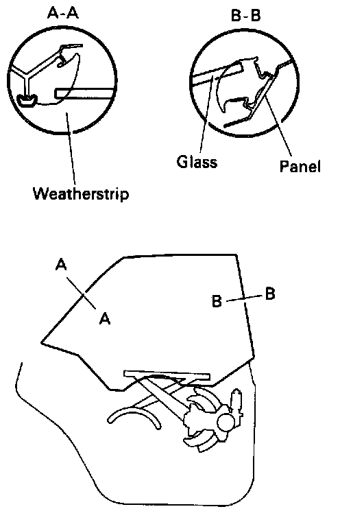 (a) When you close the door with the glass fully closed, check that the A-A, B- B sections are the same as the condition shown in the illustration.